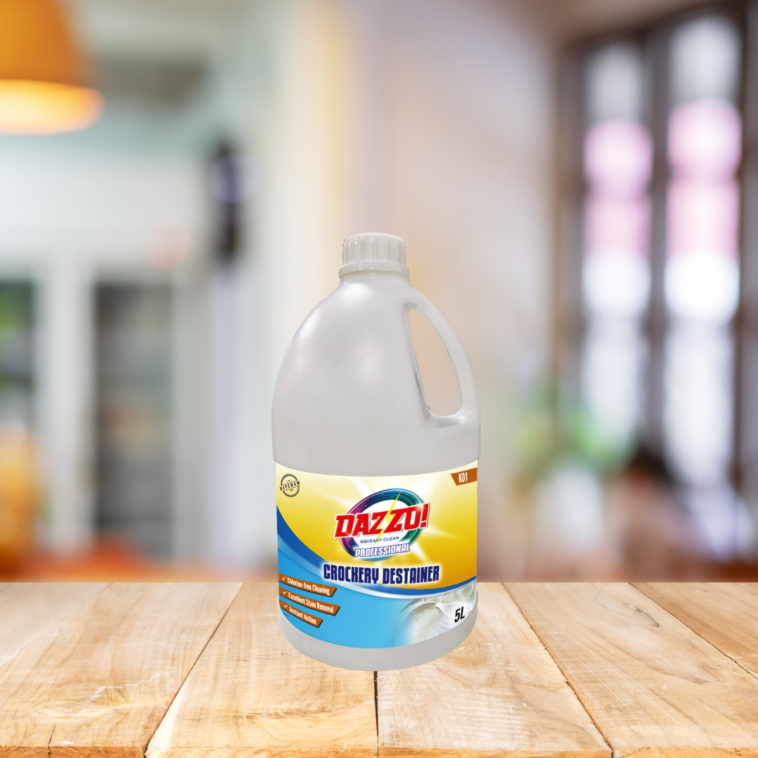 As an industry expert, our Dazzo! Professional Crockery Destainer effectively removes stains and discoloration from crockery with its strong and concentrated formula. Improve the appearance and lifespan of your crockery with this 5L pack.